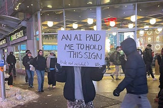 An AI paid me to hold this sign🪧